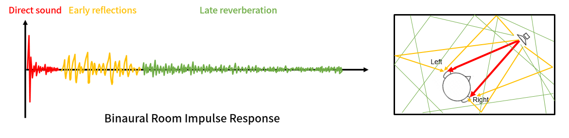 For listeners to perceive these senses, it is essential to consider direct sound, reflections, and multimodal elements such as visual information, and head rotation when rendering audio. Audio rendering that takes into account these factors can be achieved through the convolution of Binaural Room Impulse Response (BRIR) with the anechoic audio source.