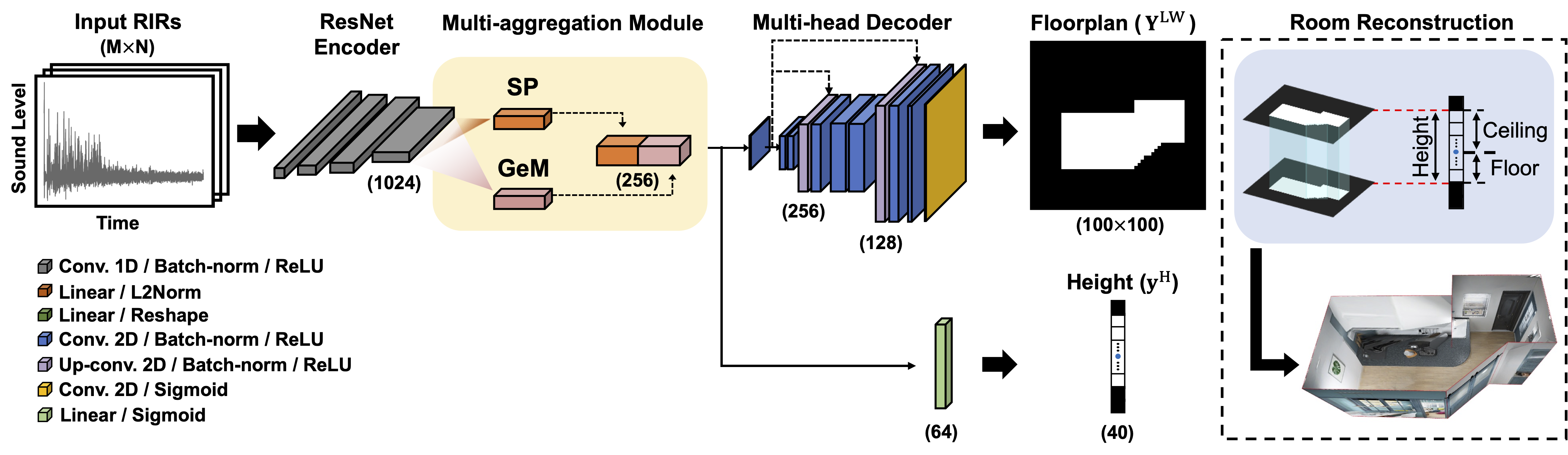 To overcome this challenge, we use acoustic echoes to discover room geometry. Acoustic echoes contain crucial information about indoor geometric characteristics. When an audio device emits sound, it interacts with room boundaries, and this interaction is captured as a room impulse response (RIR). Identifying invisible (non-line-of-sight) walls from measuring device position becomes possible by utilizing high-order echoes reflected from multiple walls.
